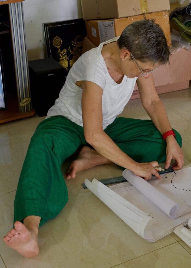 Mona & Louise (incidentally the names of her two cats) marries her focus on sustainable development that improves the lives of women, with her other love; fashion. She recently qualified as a professional seamstress, and delights in helping local seamstresses learn new techniques that improve the quality of the clothes they produce, making them more desirable and durable.